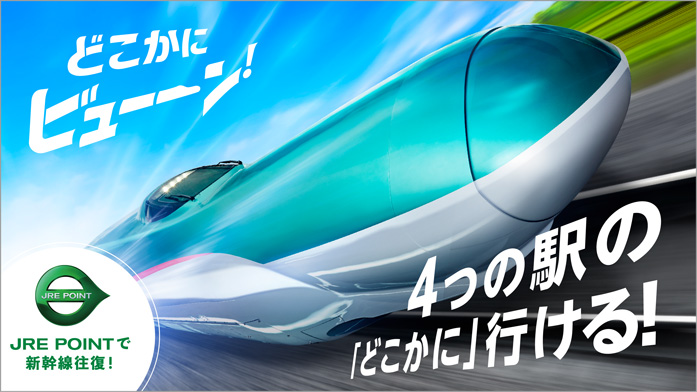 どこかにビューーン!+駅レンタカープランは、下記の適用条件をすべて満たしている場合、対象のどこかにビューーン!きっぷご利用分の10%のJRE POINTを付与します!